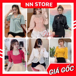 Áo kiểu nữ chất vải MT siêu mềm mịn phối kiểu nơ nhiều màu dễ thương Áo công sở nữ