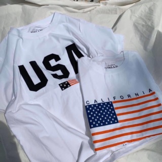 Áo thun giấy form rộng in lá cờ CALI USA chữ tay ngắn cổ tròn