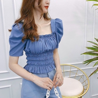 Áo cổ vuông tay bồng chun nhún eo nhiều màu
