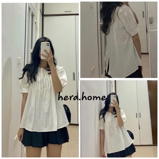 Sơmi babydoll cúc sau dập li ngực trước kèm hình thật