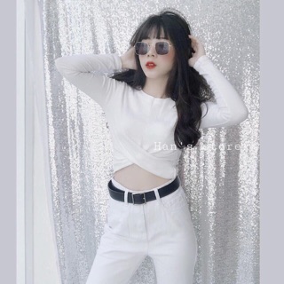 Áo thun borip xoắn eo crop sang chảnh [Hình thật mẫu shop tự chụp]