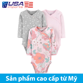 Set 3 bodysuit tay dài cài chéo hồng họa tiết hoa Car-tờ Auth Từ Mỹ (1I711010)
