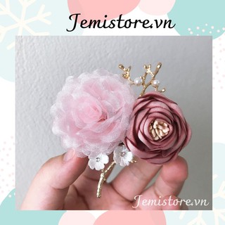 [ Hàng Thiết Kế ] Cài áo hoa hồng nhung, trâm cài ngọc sang trọng