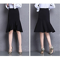 CHÂN VÁY NHÚN ĐUÔI CÁ Cạp Cao Có Quần Trong - Chân Váy Đũi Body Khóa Kéo Viền Bèo Chữ A Trắng Đen