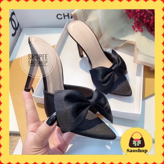 [ Dép đẹp] Sandal cao gót/ dép cao gót hở mũi/ guốc cao gót đính nơ phong cách tiểu thư nữ tính