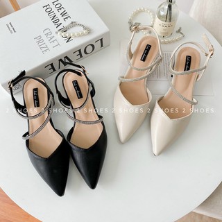 Giày Cao Gót Công Sở 2 Quai Chéo Nạm Đá Gót 3 Phân S157
