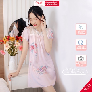 Váy ngủ 2 dây lụa mềm mịn quyến rũ , đồ ngủ sexy gợi cảm mặc nhà nữ dáng suông 2 dây sexy phối ren trắng Dreamy VS03-54