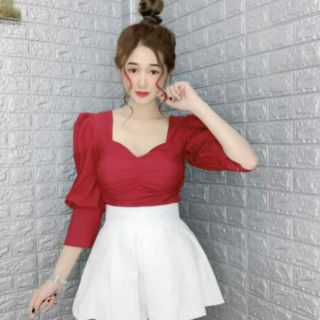 Áo bẹt vai nhún ngực tay phồng ( HÌNH +VIDEO THẬT)