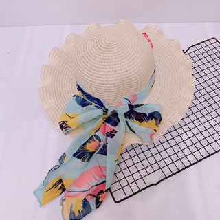 [Mã FAMARAL1 giảm 10K đơn 50K]NÓN CÓI ĐI BIỂN - Vành rộng lượn sóng thắt nơ hoa văn