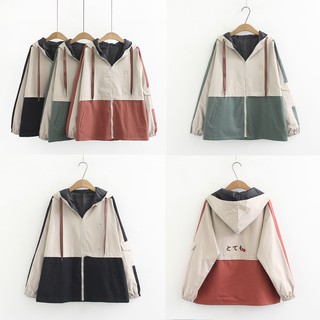 Áo khoác dù hai màu phối chữ nhật dễ thương C032