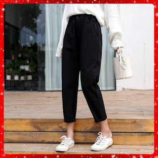Quần baggy đũi xước cạp chun, Quần đũi nữ dài cạp chun