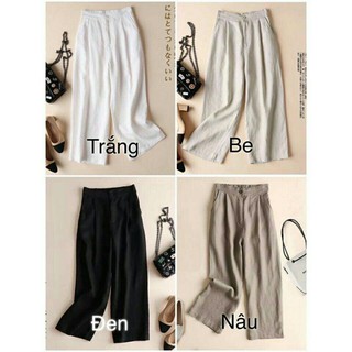 Quần Baggy Nữ Vải Đũi Lưng Thun Giả Cúc