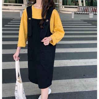 [CHẤT LƯỢNG_TẶNG QUÀ] Đầm yếm jean ngang gối đai bảng to cài nút, hàng xịn Quảng Châu cao cấp C155