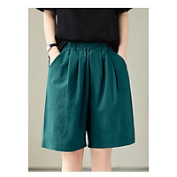 quần đùi nữ ống rộng cạp chun bigsize chất đũi mềm dạng quần sooc nữ mặc ở nhà thoáng mát