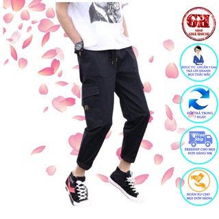 Quần Cargo kaki ống rộng lưng thun túi hộp có nút gài phong cách Nhật Bản cho nam nữ vải kaki cotton dày,dễ phối đồ