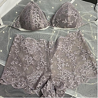 Bộ Nội Y Thiết Kế Ren Cao Cấp Xám Nhạt Có Mút Quần Đùi