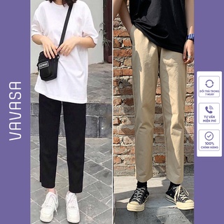 Quần kaki nữ ống rộng suông lưng cao baggy cạp chun bigsize unisex VAVASA QK01