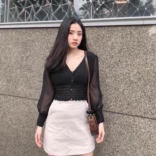 Set áo sơ mi trong suốt tay bồng ( áo sơ mi + áo 2 dây). THỜI TRANG 1989