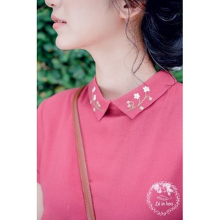 Áo linen hồng thêu tay cổ đức Lá In Hoa