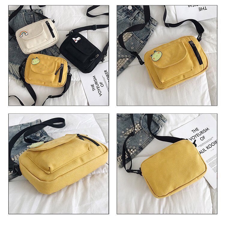 Giới thiệu [TẶNG HUY HIỆU] Túi vải đeo chéo canvas đựng đồ đeo vai thời trang giá rẻ có khóa ngăn phụ ngoài