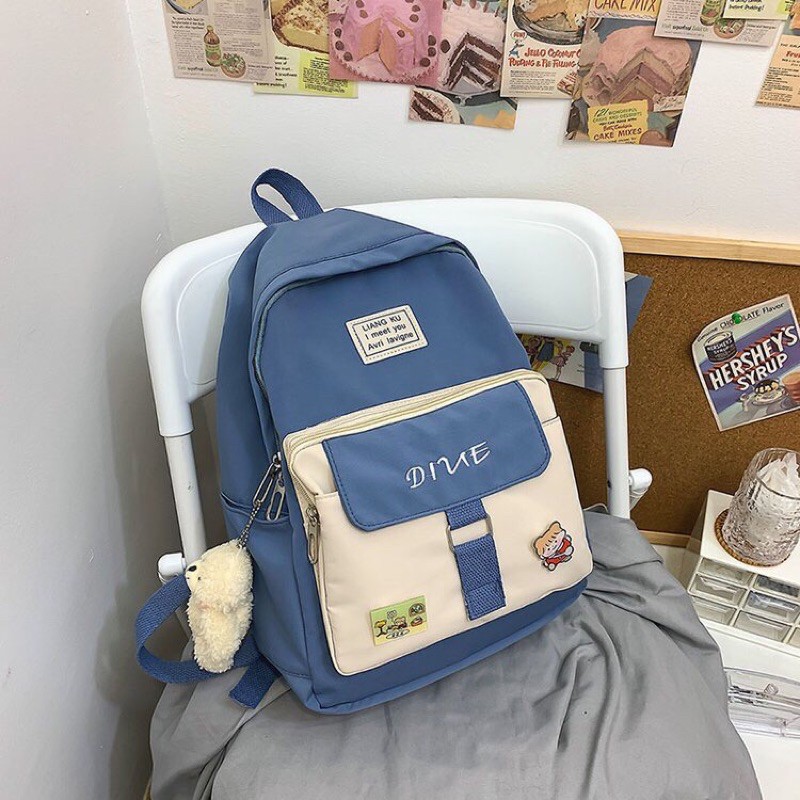 Giới thiệu [TẶNG KÈM Tikcor ]Balo ulzzang nữ đi học DIVE đựng laptop, sách vở Hàn Quốc