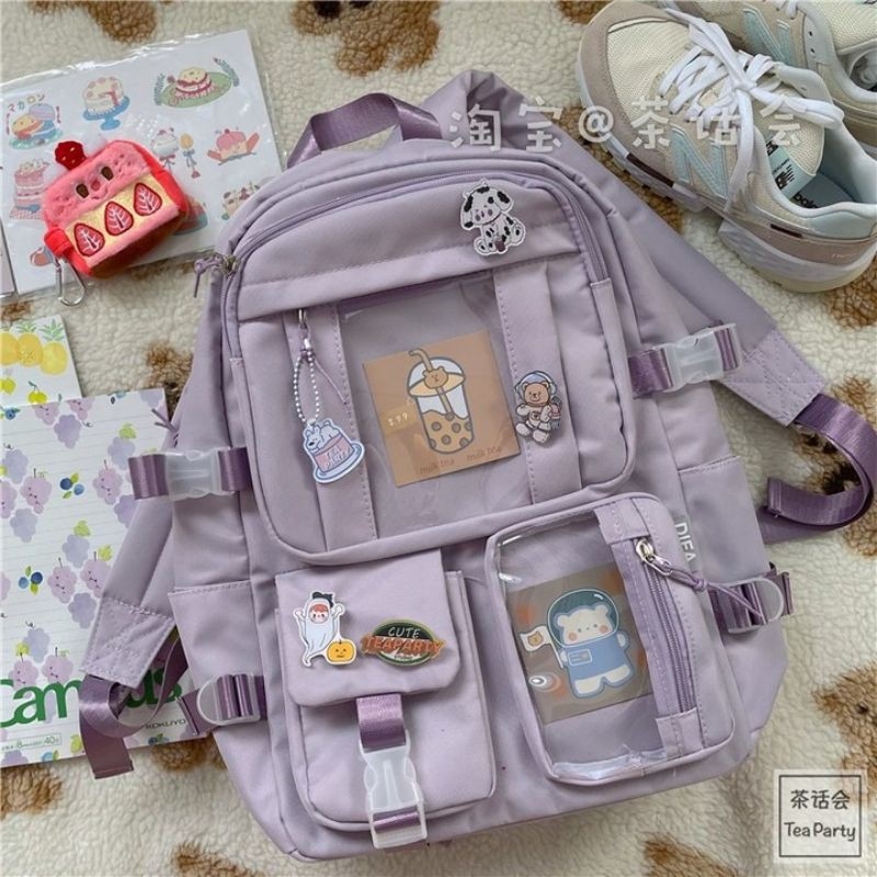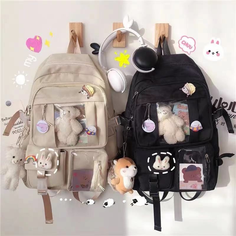 Giới thiệu [Tặng sticker] Balo, cặp sách, Ba lô nữ túi phối nhựa trong ulzzang chất dày dặn đựng vừa laptop A4 mẫu mới [BL2063]