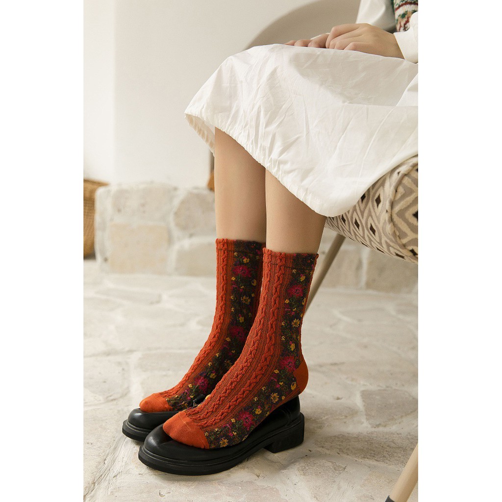 Thời Trang Nữ > Vớ/ Tất > Tất || Tất chun in hoa vintage các màu