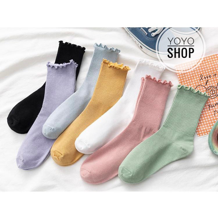 Tất cổ cao nữ bèo nhún, vớ bèo nhún nữ cổ cao màu trơn basic thời trang Vintage Hàn Quốc nhiều màu