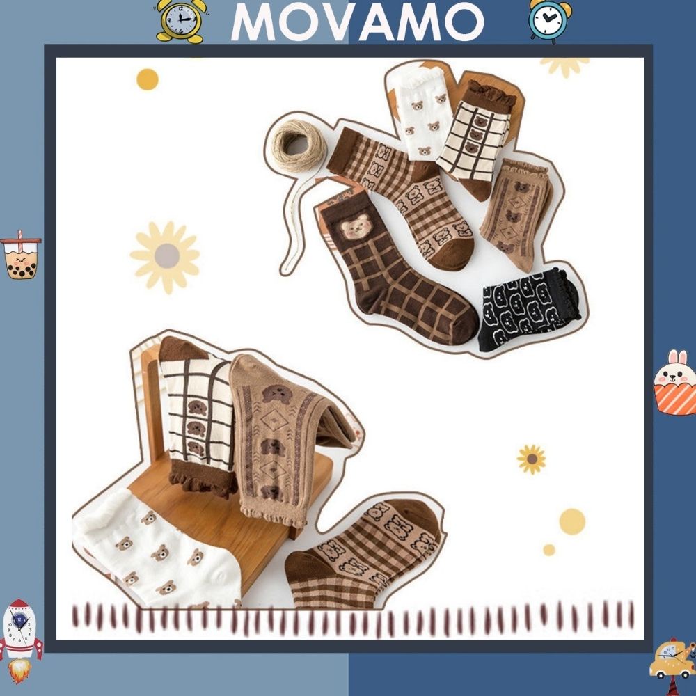 Tất cổ cao nữ hoạ tiết gấu đáng yêu Movamo vớ cotton dày dặn không xù Hàn Quốc TN140