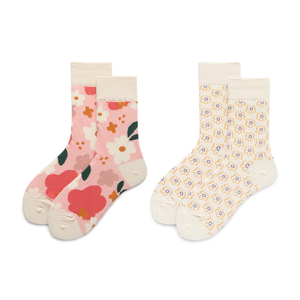 Tất cổ cao nữ Họa tiết hoa Ngọt ngào Dễ thương Cao cấp Hàn Quốc Vớ Cao cổ nữ Cute Cotton Thời trang