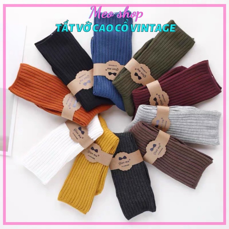Thời Trang Nữ > Vớ/ Tất > Tất || Tất cổ cao vintage Hàn Quốc Unisex Meo shop Vớ cao cổ len gân nam nữ đen trắng Basic tới bắp chân