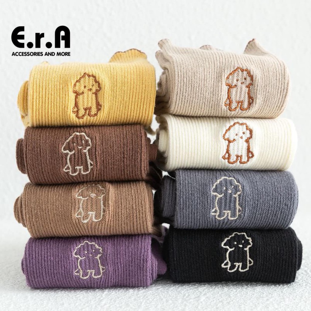 Giới thiệu Tất Dài Thêu Cún Cho Nữ ERASHOP 077331 - Màu Trơn Đáng Yêu, Vải Co Giãn 4 Chiều, Rẻ Đẹp
