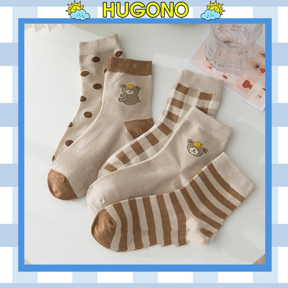 Tất nữ cao cổ hoạ tiết gấu nâu xinh xắn Hugono vớ cotton co dãn phong cách Hàn Quốc TN139