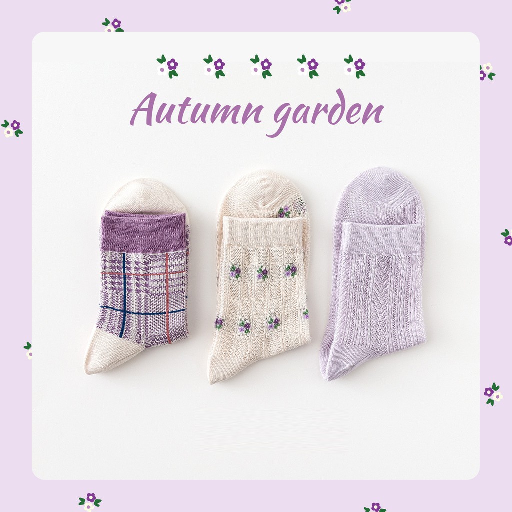 Giới thiệu Tất nữ cổ cao CARAMELLA, set vớ nữ cao cấp 3 đôi freesize Hoa Tím kèm túi zip xinh xắn