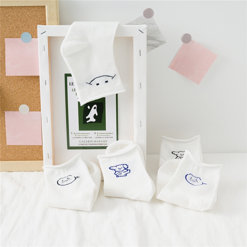 Giới thiệu Tất nữ cổ cao màu trắng họa tiết hoạt hình dễ thương - T057