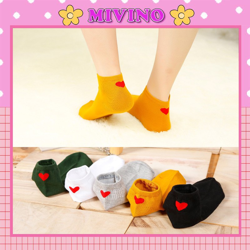 Tất nữ cổ ngắn Mivino vớ nữ cute họa tiết gót trái tim cực dễ thương TN32