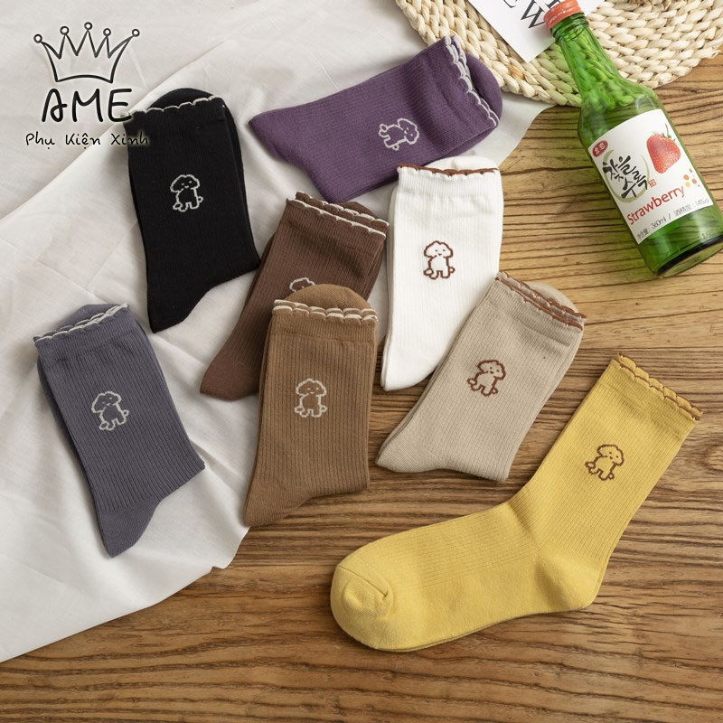 TẤT NỮ CỔ CAO HỌA TIẾT HÌNH CÚN AME BEAUTY DỄ THƯƠNG