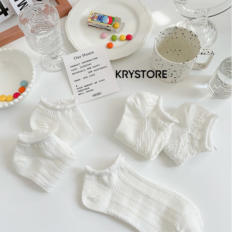 TẤT NHÚN CỔ NGẮN TRẮNG mang phong cách Hàn Quốc hay còn được gọi là phụ kiện thời trang nữ có mặt trong tủ đồ của các cô nàng. TẤT NHÚN thường được sử dụng với mục đích giữ ấm bàn chân, bảo vệ sức khỏe hoặc đơn giản là thấm hút mồ hôi trong quá trình bạn đi giày. Những loại TẤT NỮ phổ biến trên thị trường hiện nay bao gồm : TẤT NHÚN CAO CỔ, TẤT NHÚN MẶT CƯỜI , TẤT NHÚN VINTAGE, TẤT PHONG CÁCH ,TẤT NHÚN CỔ BÈO,… Bạn nên sở hữu đa kiểu dáng tất để sử dụng được trong nhiều trường hợp khác nhau. Bạn không nên sử dụng cùng một kiểu tất dành cho tất cả các loại trang phục và giày.