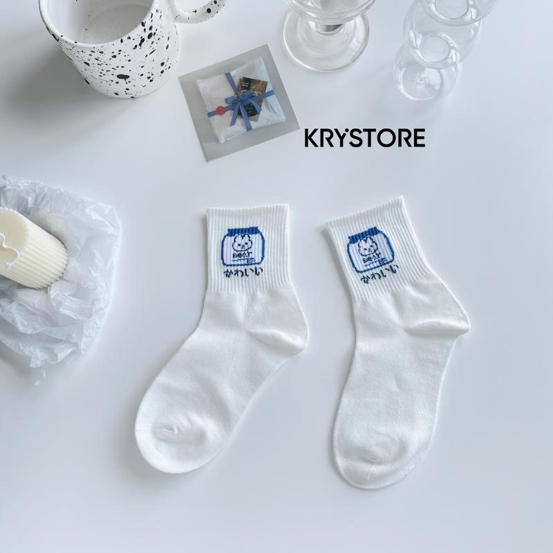 Giới thiệu Tất trắng cao cổ nam nữ chất đẹp cotton hình con vật Cute Krystore TC27