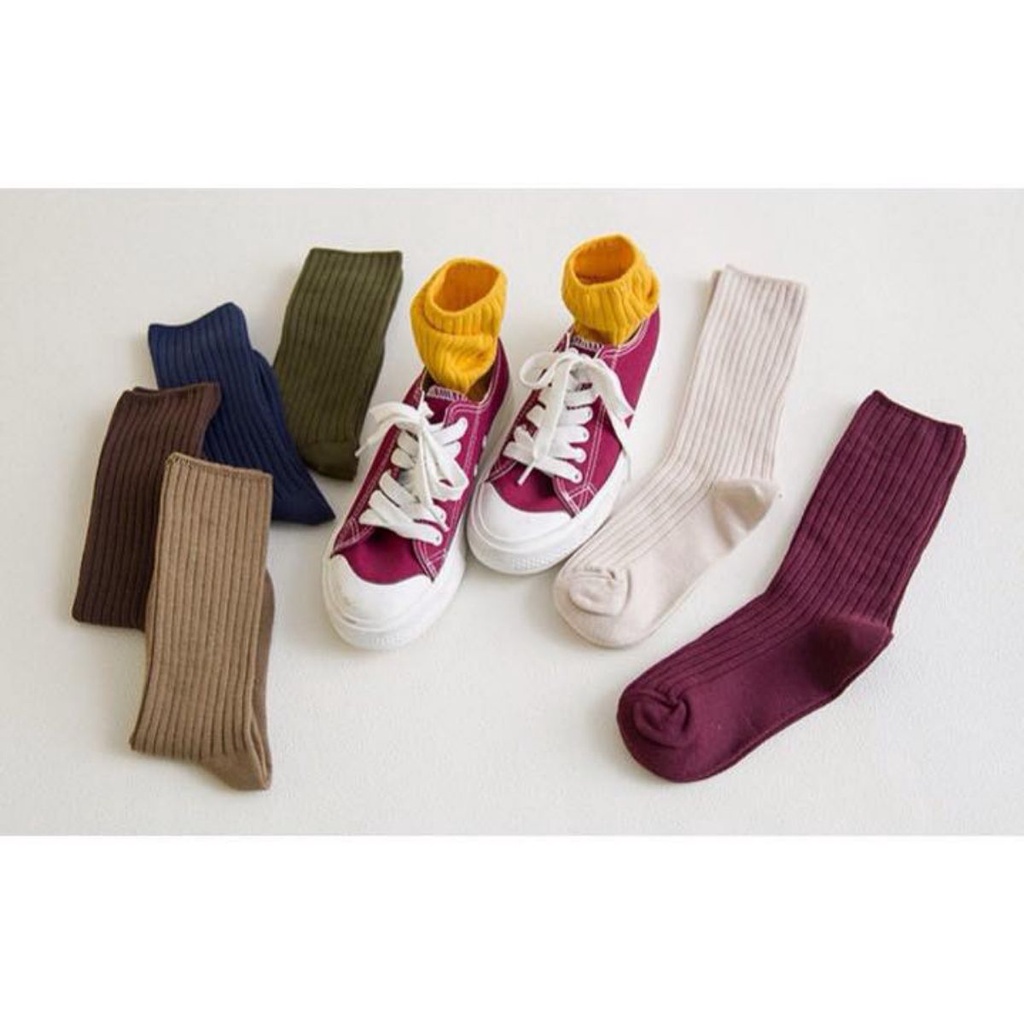 Tất vớ cổ cao nam nữ Vintage Hàn Quốc len gân loại xịn siêu MỊN