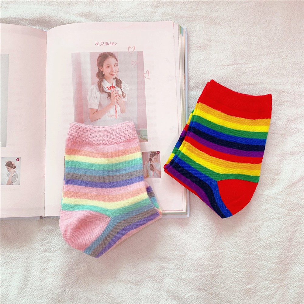 Giới thiệu Tất Vớ Cotton Họa Tiết Cầu Vồng Rainbow Unicorn 2 Tone Nổi Bật