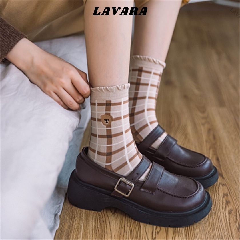 Tất vớ nữ cao cổ hoạ tiết phong cách vintage co giãn nhiều LAVARA TA02