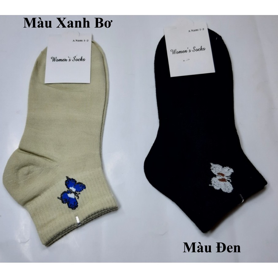 TẤT VỚ NỮ CỔ NGẮN In hình bướm Chất liệu thun cotton co giãn Thoáng mát Thấm hút mồ hôi Nhãn hiệu Women's Socks