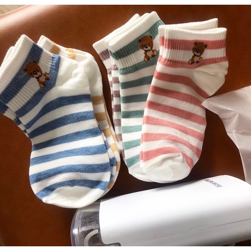Tất Vớ Nữ Cổ Ngắn Kẻ Sọc Dễ Thương Set 5 Đôi Cotton Mềm, Mịn Thoáng Chân T03
