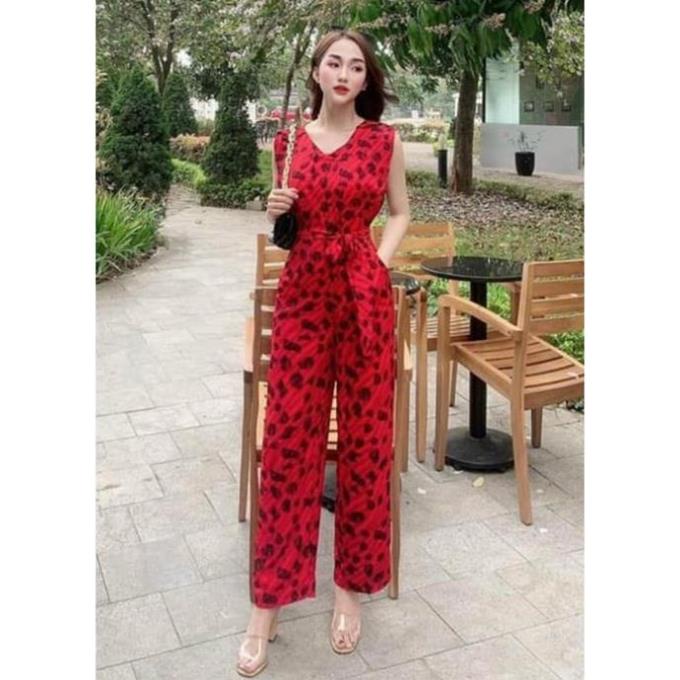 Giới thiệu TBL-Video ảnh thật, Jumpsuits Dài Ống Rộng Lụa In 3D họa tiết rằn ri hoa lá cành