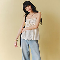 DOTTIE - Áo 2 dây cột nơ vải eyelet - Trắng kem - T1107
