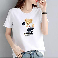 Áo thun nữ MXM cổ tròn form rộng in gấu dễ thương thun cotton 4 chiều từ 45-60kg ( ANU082 )