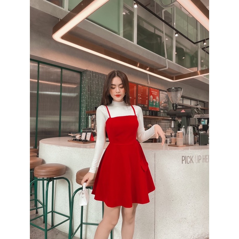 Thời Trang Nữ > Đồ liền thân > Quần yếm || TPHCM Set Ao Trắng Đầm Yếm Đỏ xinh Xỉu CO SAN