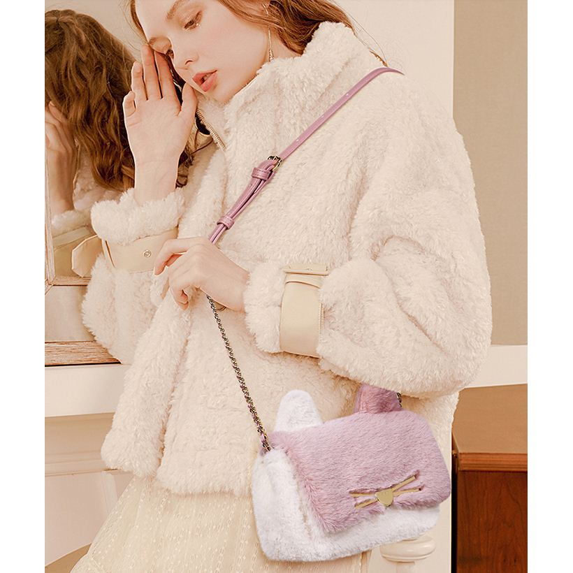 Giới thiệu Túi đeo chéo nữ dễ thương đẹp lông mịn như nhung đi chơi thời trang Just Star kiểu mèo 172568