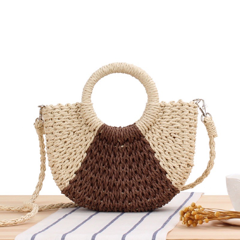 Túi Ví Nữ > Túi đeo chéo & Túi đeo vai || Túi Cói Bán Nguyệt Mix Choco